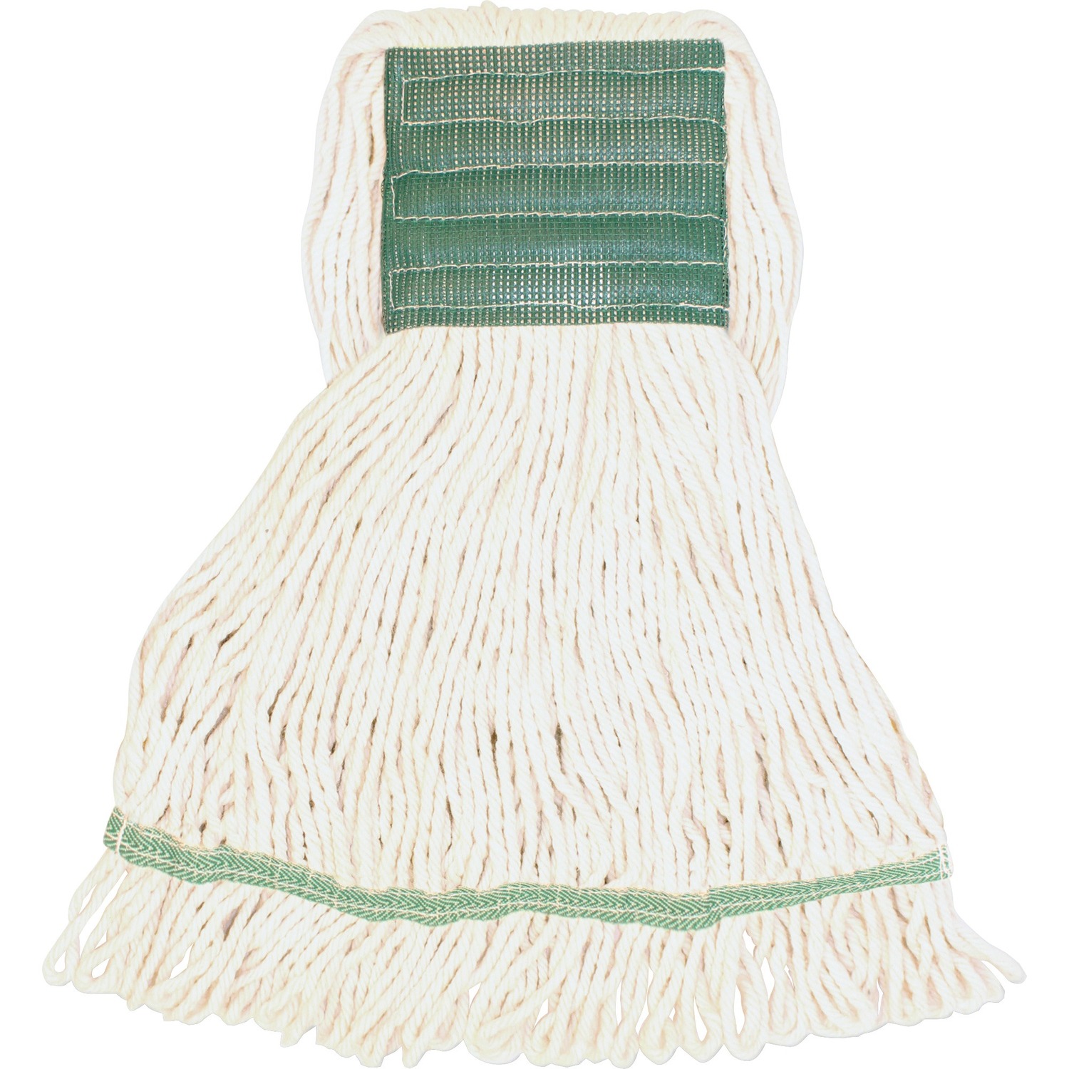 Medium-size mophead with a wide headband is ideal for general cleaning and disinfecting. Synthetic blend fibers (rayon and cotton) absorb six to seven times their weight. Mop offers a limited break-in period so you can start mopping sooner. Looped ends provide greater durability and launderability. Wide headband allows added launderability and use with all handle styles. 5" mesh headband with "S" zig-zag stitch pattern provides a more durable headband.